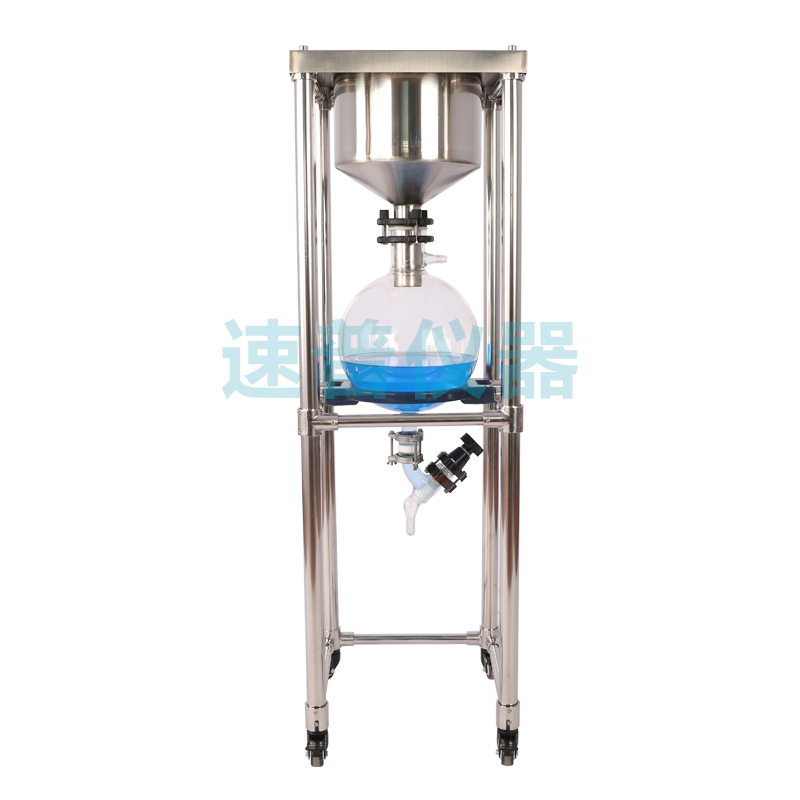 1.整机材质采用优质304不锈钢并带有万向脚轮,整体具有良好的防腐性能。 2.瓶体玻璃采用GG-17高硼硅玻璃有良好的物理与化学性能。 3.漏斗与瓶体采用复合连接密封方式,适应各种物料,经久耐用。